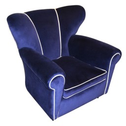 Pair of 1940’s Italian club chairs , re-upholstered in blue velvet with white piping